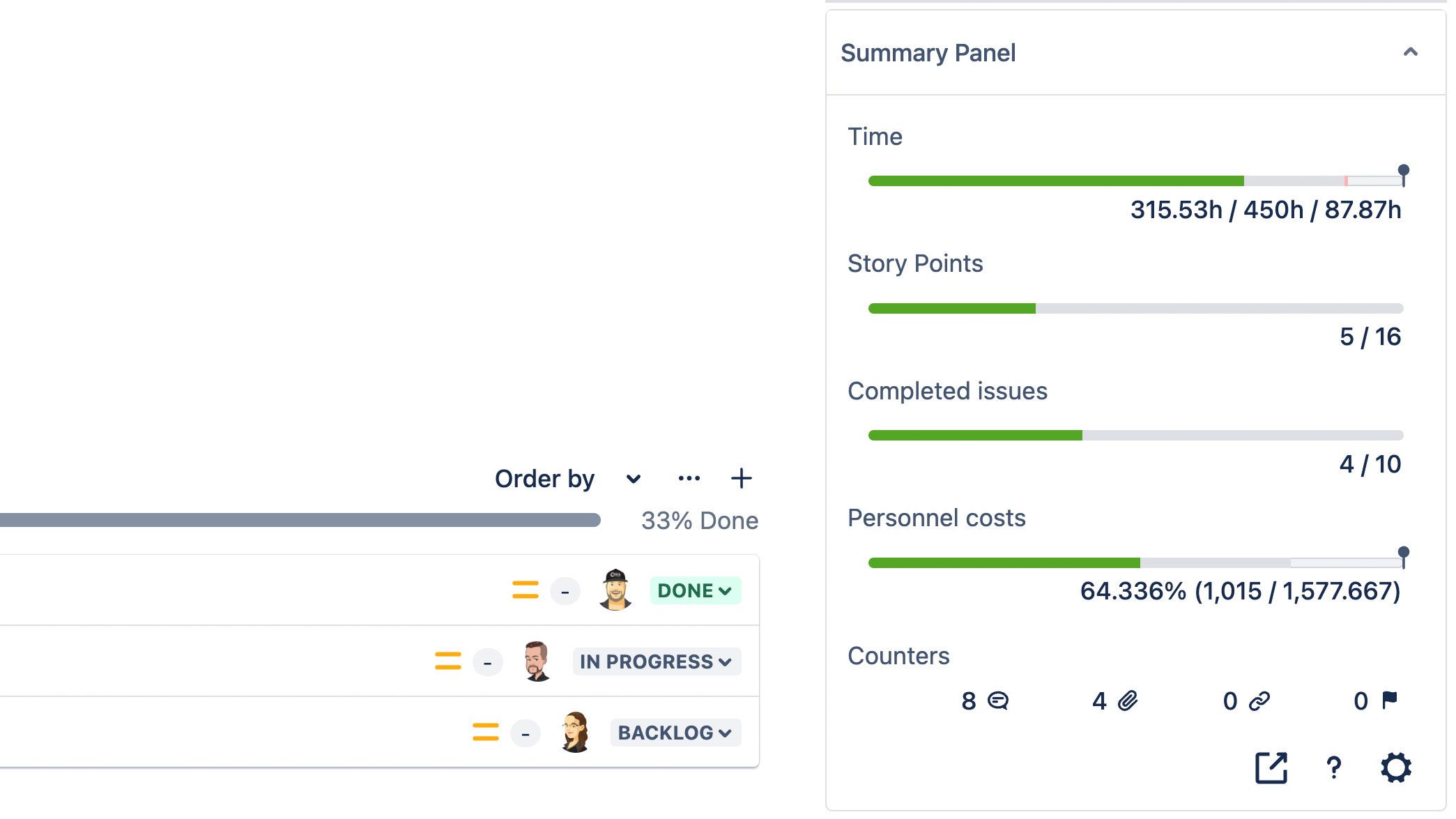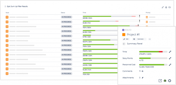Projektmanagement auf einen Blick – ohne Rätselraten! Mit ESU behalten Sie den Fortschritt Ihrer Projekte in Jira stets im Blick – ohne sich durch endlose Listen oder komplexe Custom Fields zu kämpfen. Fortschrittsbalken, Echtzeit-Dashboards und eine intuitive Oberfläche machen Ihr Projektmanagement effizienter. Steuern Sie Budgets, Ressourcen und Aufgaben mit maximaler Transparenz – ganz ohne Stress.