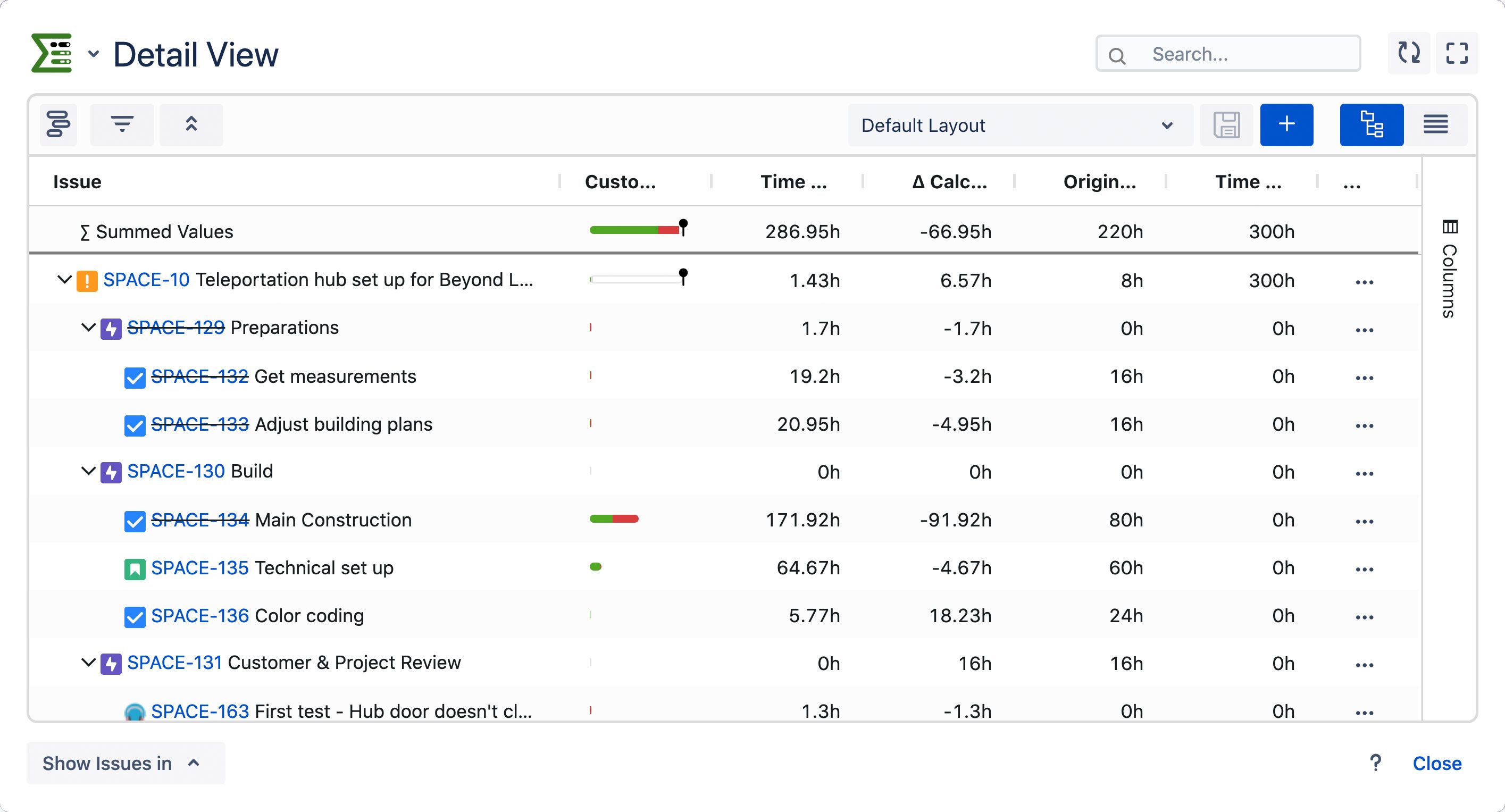 Als Projektmanagement-Software ist Jira ein Meilenstein für die Arbeit von Projektleitern und Co. Doch in puncto Projektstatusbericht schwächelt das Tool ein wenig. Zwar gibt es in Jira sowohl unterschiedliche Status also auch einige Tracking Funktionen. Das Problem ist jedoch: Man sieht nicht auf einen Blick, wie weit die unterschiedlichen Projekte tatsächlich sind, da den jeweiligen Vorgängen bzw. Aufgaben meistens weitere Untervorgänge zugeordnet sind. Diese Einschränkung bedeutet, dass viele wichtige Untervorgänge und ihre jeweiligen Fortschritte im Projektstatusbericht möglicherweise nicht vollständig berücksichtigt werden.